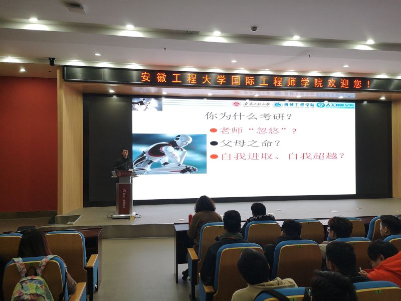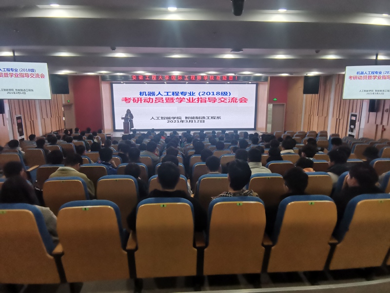 3月12日下午, 有声小说 在国际工程师学院大报告厅举行机器人工程专业2018级考研动员暨学业指导交流会。学院党委副书记李文江、教师代表、机器人工程专业2018级全体学生共160余人参会。交流会由智能制造工程系主任刘玉飞主持。