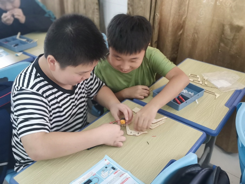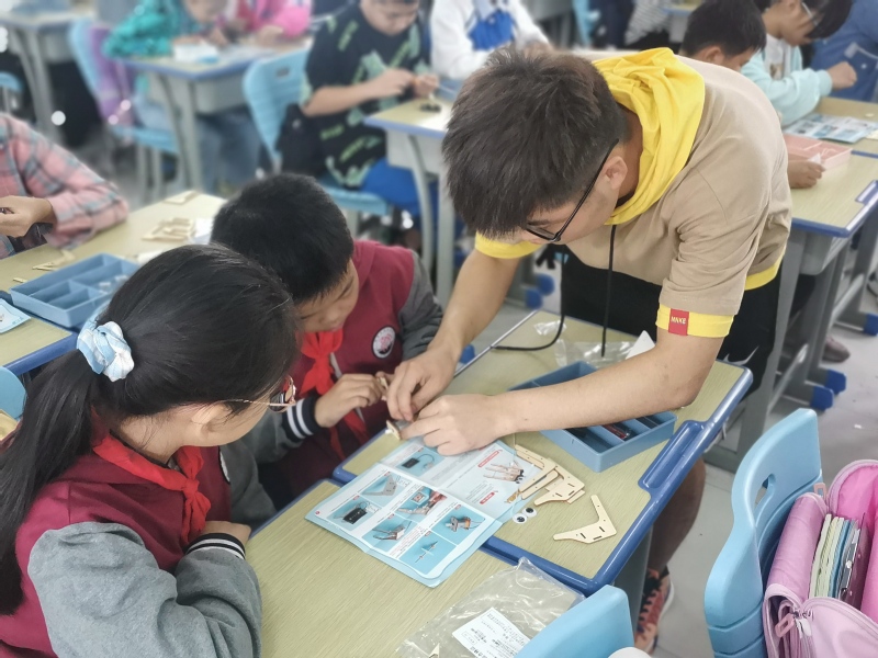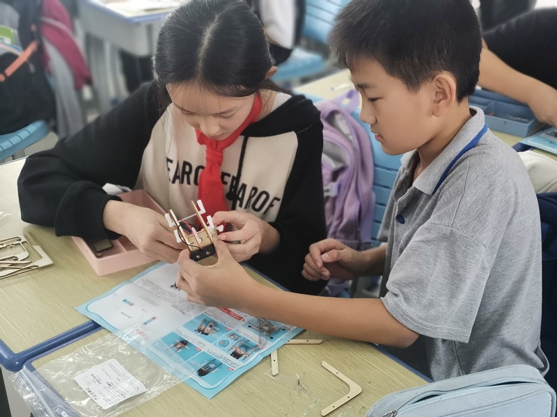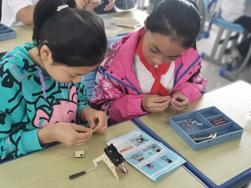 讲解机器人知识之后,科普团指导同学们完成了“蜘蛛机器人”的制作,让同学们亲身感受到机器人技术的魅力,激发了同学们对科技的兴趣。