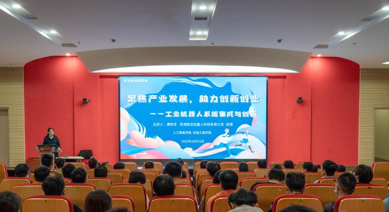 为贯彻落实“三全六专”工作要求,提升大学生创新创业能力,激发大学生创业意识,引导学生树立正确就业观,10月21日晚, 有声小说 、机械工程学院特邀优秀校友、芜湖锐龙机器人科技有限公司经理谭铁龙,来校开展优秀校友创业报告会。报告会的主题为“聚焦产业发展,助力创新创业——工业机器人系统集成与创新”, 有声小说 、机械工程学院100余名本科生参加报告会。报告会由 有声小说 党委副书记李文江主持。