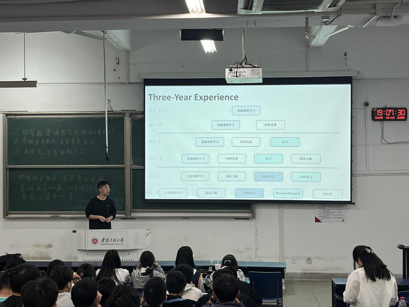 人工智能222薛雍涛表示:“听了三位学长的分享,收益匪浅。一分耕耘一分收获,看着台上优秀的学长们,想必他们一定付出了很多。在今后的学习生活中我一定要向他们学习,要以他们为榜样。”智科221周全表示:“通过聆听三位学长的分享,我明白了每个人所擅长的领域不同,发展的方向和切入点也不同,因此我们要找到自己的优势,正视不足,做好规划,为以后的发展奠定基础。”