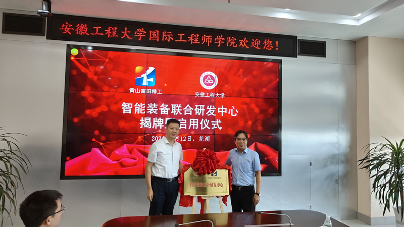 9月12日,黄山富田精工智造股份有限公司董事长方安江、研发总监龚志龙、研发部经理戴文明、技术顾问刘凯、知识产权及法务部经理沈陈一行6人来校参加“有声小说 -黄山富田智能装备联合研发中心”揭牌及启用仪式。仪式在国际工程师学院图文中心701会议室举行,校党委常委、副校长凤权出席, 有声小说 和纺织服装学院的老师代表参加,会议由科技处负责人王宗乾主持。