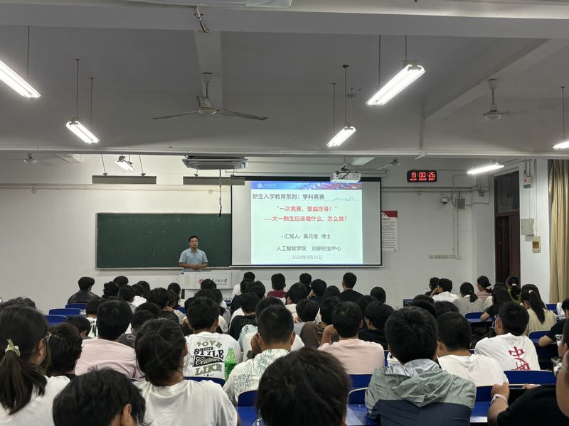 9月19日、25日、26日晚,针对2024级新生的学科竞赛讲座在2教报告厅举行。学院大学生创新创业中心主任桑元俊从高中与大学的区别、关键学科知识的学习及学习方法、竞赛赛事与科研以及英语四六级考试等四个方面进行介绍,全方位帮助2024级新生们明确学习方向及专业特色,进一步激发了新生们对学科竞赛的参与热情,明晰未来发展方向。