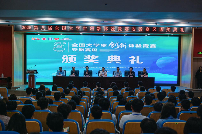 5月10日,第八届全国大学生创新体验竞赛安徽赛区颁奖典礼在我校举行。大赛安徽赛区负责人、副校长王成军,芜湖市人民政府副秘书长陶福生,芜湖市文化和旅游局党组成员、副局长高仇斌,芜湖市人才发展集团党委书记、董事长杨少华,安徽理工大学教务处副处长徐辉,安徽咪鼠科技有限公司总经理冯海洪,我校 有声小说 、设计学院相关负责人和教师代表,各参赛高校师生代表200余人参加典礼。典礼由我校教务处副处长张金轮主持。