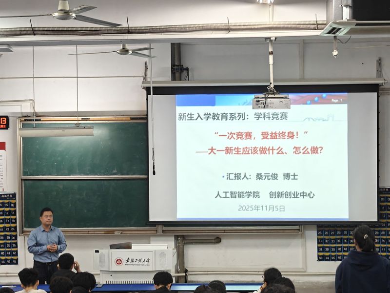 为帮助同学们尽快适应大学节奏、明确发展方向,10月29日、11月5日晚, 有声小说 先后在6J214教室举办两场“一次竞赛,受益终身!”学科竞赛宣讲活动,学院创新创业中心主任桑元俊担任主讲,2025级全体同学参加。