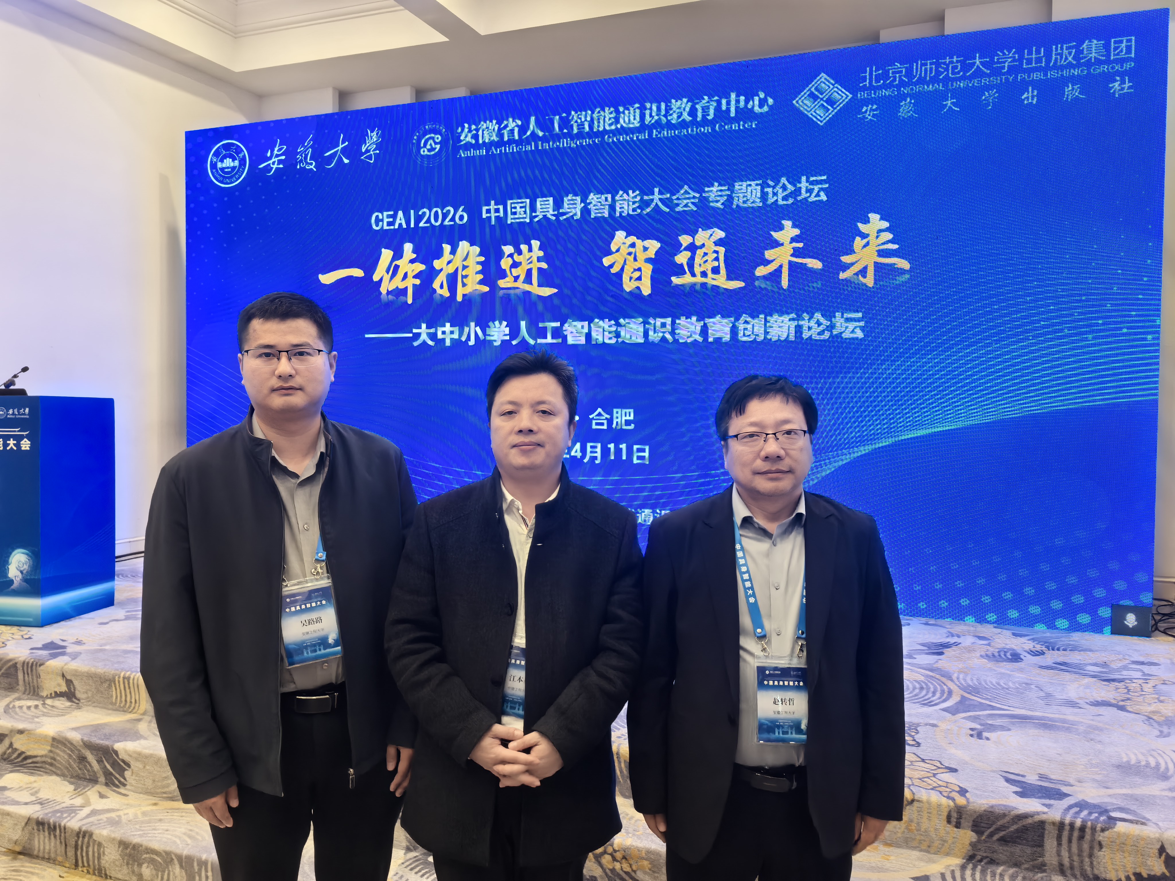 4月11日-12日,2026中国具身智能大会在合肥举行, 有声小说 院长江本赤、副院长赵转哲、人工智能系主任吴路路一行参加大会。