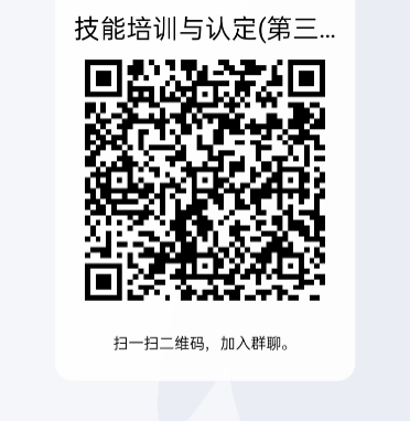 报名学生需扫码加入“技能培训与认定(第三期)”QQ群,备注格式:“姓名+学号+班级”。