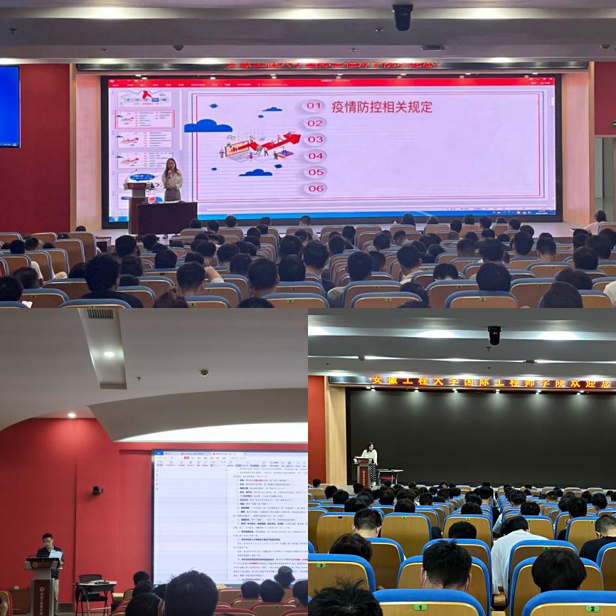 在班会上,各年级辅导员领学《中央政治局常委会召开会议 分析当前新冠肺炎疫情防控形势》,组织同学们学习习近平总书记给北京科技大学老教授的回信精神、在中国人民大学考察时的重要讲话精神、在庆祝中国共产主义青年团成立100周年大会上的重要讲话精神,传达《关于准确适应疫情形势变化有序做好平战转换工作的通知(皖教防控〔2022〕15号)》和芜湖市《关于落实重点场所常态化疫情防控措施的通告》等文件精神,向全体同学提出四点要求:一是严守纪律规矩,克服侥幸心理,认真落实常态化疫情防控要求,切实做好每日信息汇报,严禁未经批准私自外出;二是端正学习态度,夯实专业基础,提前做好个人职业生涯规划,争当锐意进取、担当实干的新时代青年;三是重视宿舍卫生,做好个人防护,当好自我健康的第一责任人,打造安全卫生、学风优良、和谐文明的宿舍新态;四是积极调整心态,加强体育锻炼,乐观面对生活,适当运动,不断提高心理调节与适应能力。