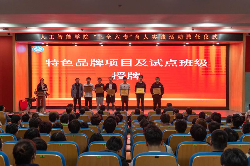 接着,任家钱为学院“三全六专”育人实践活动重点建设品牌项目及“学”起来专项试点班级授牌。人工智能211班王岩作为试点班级学生代表发言,王岩表示,人工智能211班全体同学将时刻铭记并自觉弘扬诚实做人,踏实做事,扎实做学问的优良传统,自觉将责任意识内化于心,外化于形,在学院全体老师的指导引领下,逐步提升和完善自我,发挥先进榜样力量,不负时代,不负韶华。