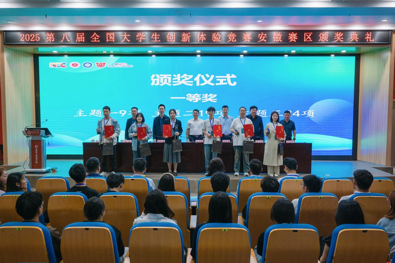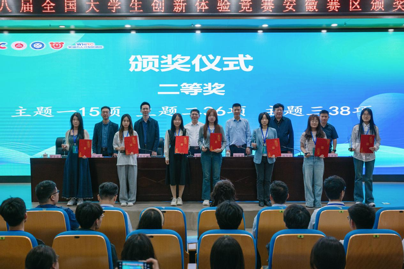5月10日,第八届全国大学生创新体验竞赛安徽赛区颁奖典礼在我校举行。大赛安徽赛区负责人、副校长王成军,芜湖市人民政府副秘书长陶福生,芜湖市文化和旅游局党组成员、副局长高仇斌,芜湖市人才发展集团党委书记、董事长杨少华,安徽理工大学教务处副处长徐辉,安徽咪鼠科技有限公司总经理冯海洪,我校 有声小说 、设计学院相关负责人和教师代表,各参赛高校师生代表200余人参加典礼。典礼由我校教务处副处长张金轮主持。