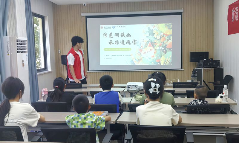 为进一步扩大实践成果的传播效果,团队在万春社区面对青少年开展了一堂生动有趣的“铁画零距离”非遗传承实践课,不少孩子举着屏幕上的“小蝴蝶”“五角星”铁画作品向队员追问铁画历史。课堂上,欢声笑语里满是小朋友的喜爱与专注,非遗魅力在每个人的心头延续。