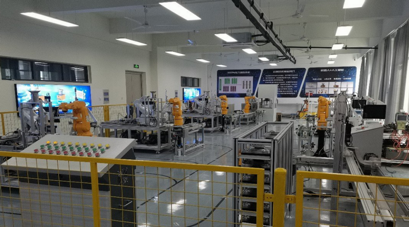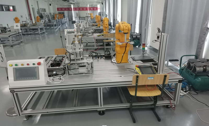 基于实践教学、科技创新和创业教育于一体的理念,建成的校内实训基地,建筑面积为5000平米。建成了“机器人认知”、“工业机器人”、“机器人集成应用”、“机器人协同作业”、“PLC控制”、“数字孪生”、“智能产线设计”、“云制造”、“移动机器人导航”、“机器人故障诊断”、“打磨和焊接作业”、“创新创业”和“学生工作坊”等15个专业实验室,设备总价值约3000万元,形成了功能完善,实验设备台套数充足,体系完整的校内实验实训基地。